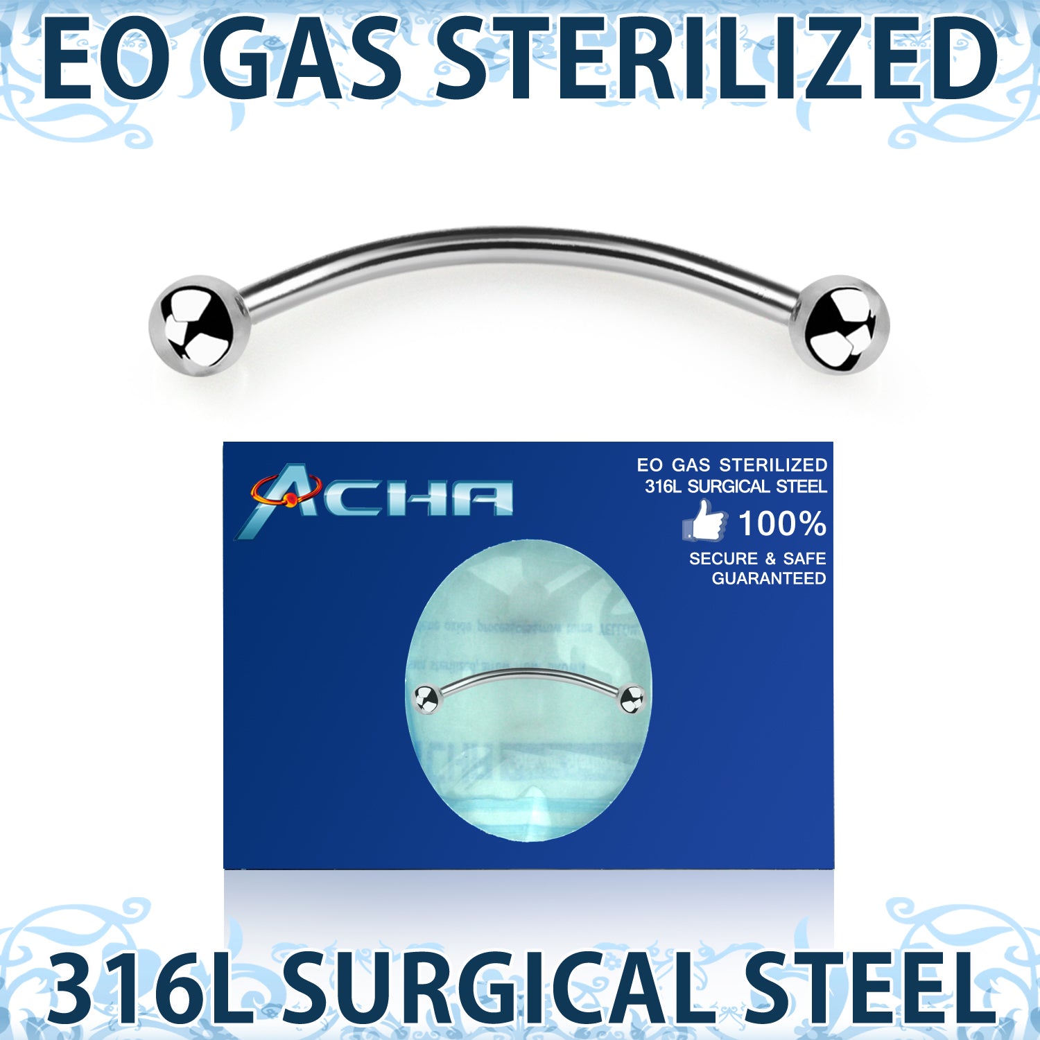 Barbel Curvo in Acciaoio STERILIZZATO spessore barretta da 1,4mm palline da 3mm